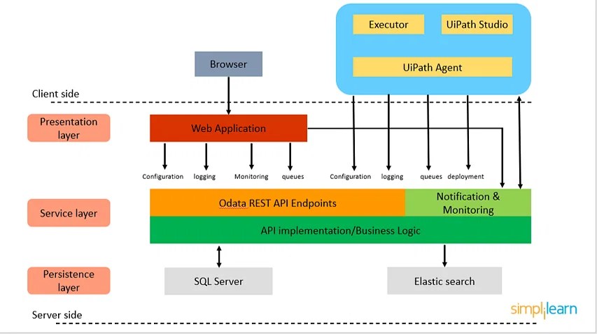 Orchestrator — It is a web-based application. It has features for deploying, monitoring, scheduling, and controlling automated bots and processes. It's a centralized forum for managing and maintaining all software bots